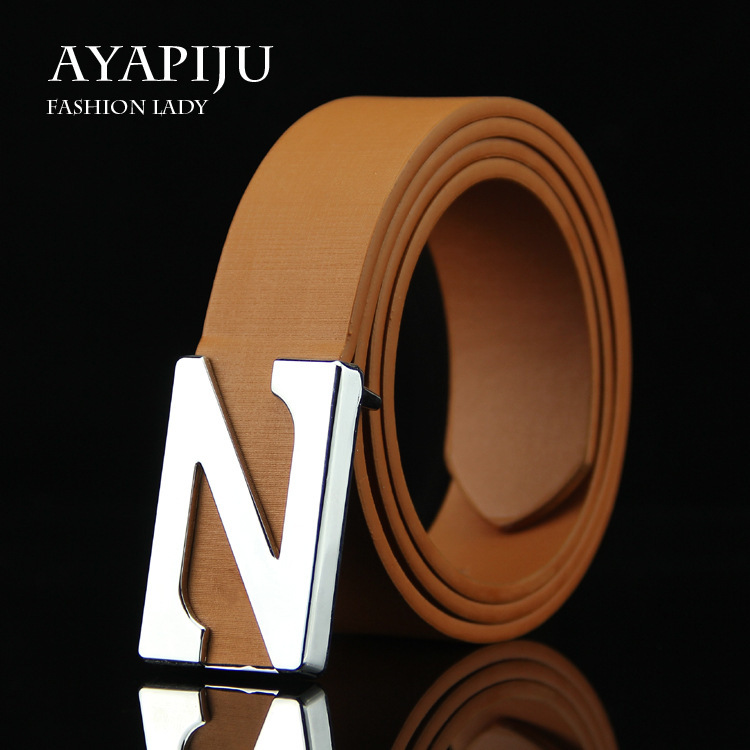 Men's Letter Smooth Buckle Belt Taobao Tmall Same Women's Plate Buckle Belt Letter Trouser Belt