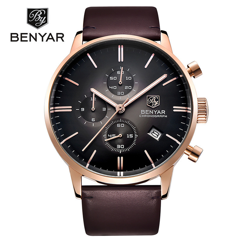 BENYAR Binya 2720K Leisure Business Fashion Tri-eye Date Leather Men's Watches One Wholesale Agent