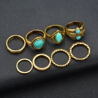 6 Sets Of Fashionable Retro Carved Turquoise ...