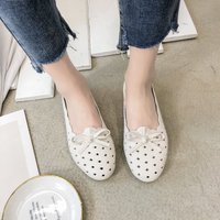 Hollow-out Small White Shoes, Thick Sole Single Shoes, Flat Sole, Recreational Breathable, One Foot Pedal Hole Shoes, Round Head In Summer 2019