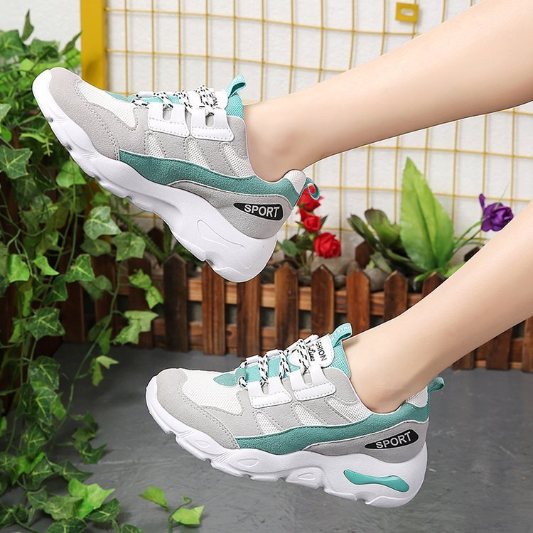 Sports Running Shoes Women's New Autumn Breathable Mesh Old Suite Thick Bottom Increased Baitie Coloured Daddy Shoes