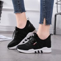 Women's Korean Version Sports Shoes With High Inner Height, Autumn New Style Leisure Shoes, Students'red Flying Weave Breathable Light Running Shoes