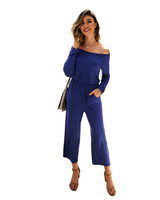 Cross Border Women's Casual One-piece Pants In Early Autumn 2019 Amazon.com Red Hot Style Solid Color Diagonal Shoulder Sweatpants
