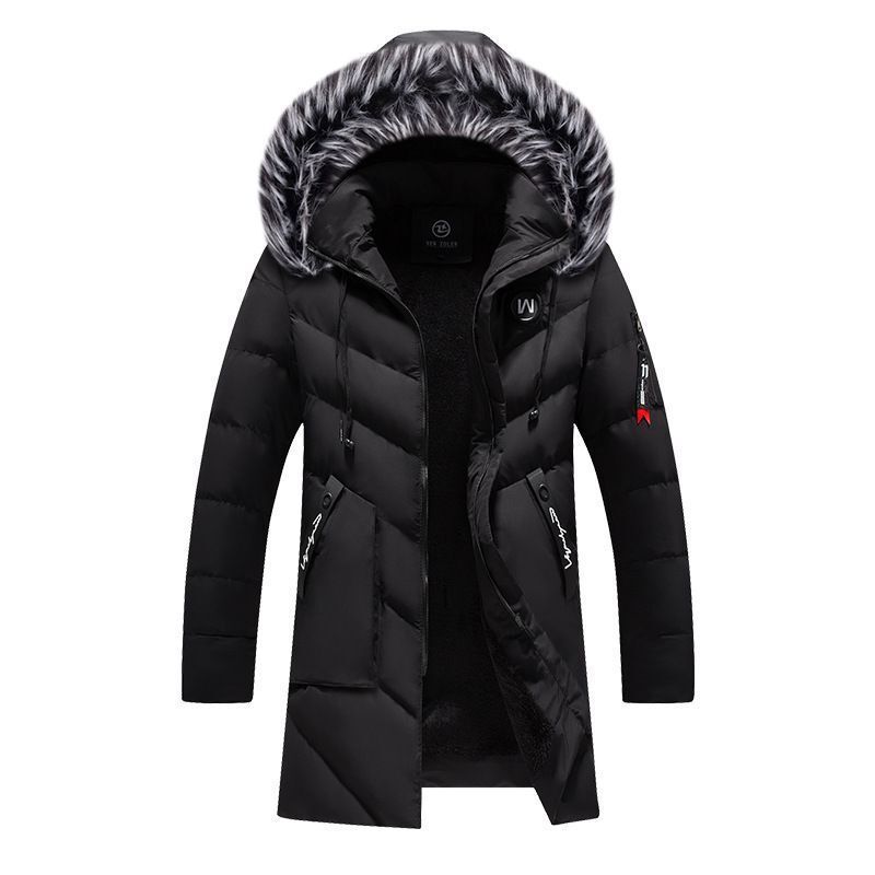 Winter Hooded New Men's Mid Length Cotton Jacket Cross-border E-commerce Solid Color Plus Plush Thickened Slim Fit Cotton Jacket For Men