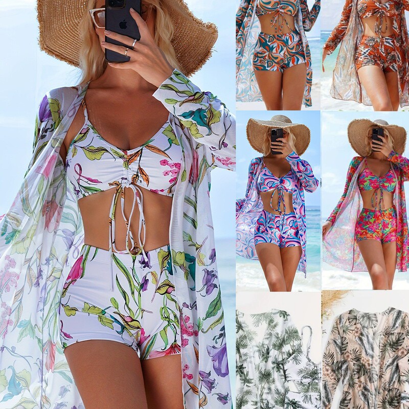 Flat Angle Pants Bikini Three Piece Swimsuit Women's Split New Cover Up Shirt Bow Fashion Beach Swimsuit
