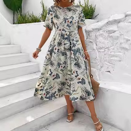 Summer Elegant New Floral Waist Slimming Long Dress 5111
