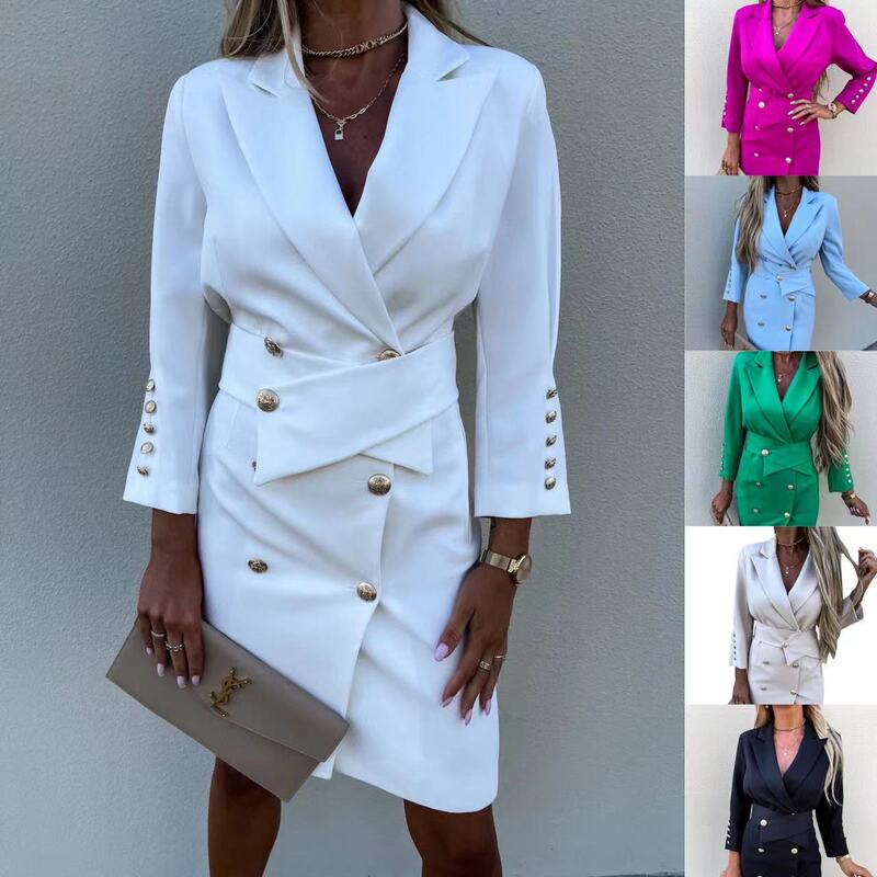 2025 Cross Border Foreign Trade Independent Station New Suit Collar Slim Fit Double Row Button Wind Jacket