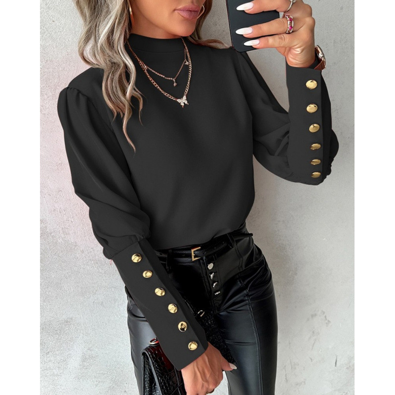 2025 Independent Station Wish Hot Spring And Autumn Long Sleeved Solid Color Lace Round Neck Button Down Shirt For Women