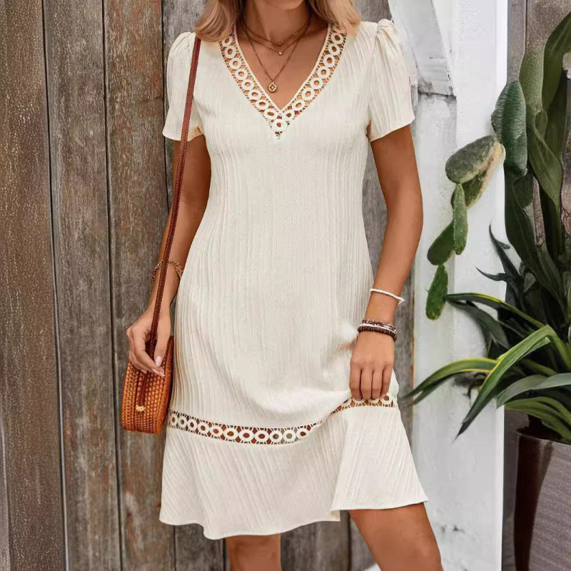Amazon AliExpress Independent Station 2024 Summer New Lace Edge V-neck Loose Simple Dress