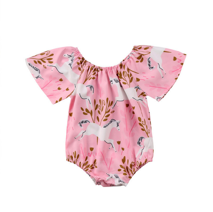 A New Girl's Hairdress With Round Collar In The Summer White Horse Printing For Baby And Baby With Triangle Hairdress