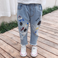 Girls' Jeans 2020 Spring Korean Cotton Cartoon Printing Jeans Cropped Trousers Can Be Opened And Distributed In One Piece