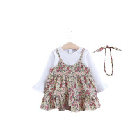 New Girl's Floral Skirt In Spring 2019 Baby's Horn Long Sleeve Suspender Skirt Set Fashion One-piece Hair Substitute E91082
