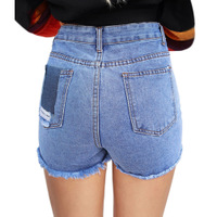 New European And American Women's High Waist, Pierced Hairline Blue Jeans Shorts, Women's Summer Loose Hot Pants 786123