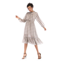 2020 Amazon Popular New European And American Women's High Waist Ruffle Edge Chiffon Skirt Bow Plaid Dress Women