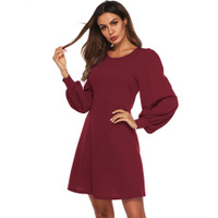 Amazon Women's Fashion Blockbuster Autumn And Winter New Style Loose Lantern Sleeve Fashion Simple A-shaped Skirt Slim Dress A1727