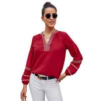 Autumn New Black Show Thin Top Women's National Embroidery V-Neck Long Sleeve Loose Set Shirt 252254