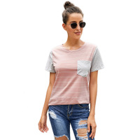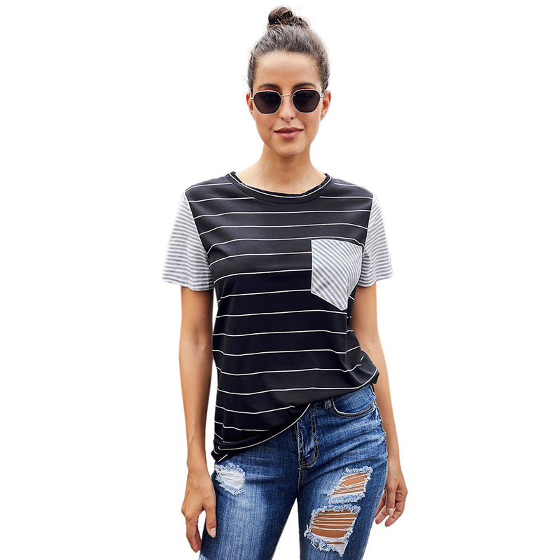 Short Sleeve T-shirt Women's New Summer European And American Short Sleeve Loose Women's Top Color Contrast Stripe T-shirt 252159